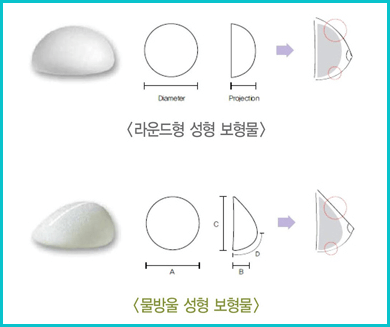때문에 원형 보형물과 달리 수술 후 보형물과 유방 내 공간에서 뜨는 공간이 매우 적어 보형물의 위치의 변형이나 주름의 형성, 구축 등의 부작용이 적습니다.또 원형 보형물에 비해 가슴의 상부 및 하부 프로젝션 정도를 정교하게 리모델링하는 것이 가능하여 보다 자연스럽고 아름다운 가슴을 얻을 수 있다는 장점을 가지고 있습니다.