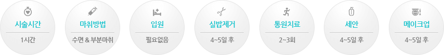 흔히들 매몰법은 잘 풀린다고 알려져 있습니다. 사실상 초기에 한국에 매몰법이 도입되었을 당시 시행되던 방법은 비교적 풀리는 확률이 높은 경향이 있었습니다. 물론 그 이유에는 적절한 적응증에 해당되지 않는데 매몰법을 시행한 경우도 포함되겠지만 수술적 수기가 부적절한 면도 있습니다. 이렇게 쌍꺼풀이 풀린다는 것은 환자의 입장에서나 의사의 입장에서나 모두 번거로운 일이고, 따라서 이를 해결하고자 하는 노력이 지속되어 현재 시행되고 있는 매몰법은 그 루프의 형태와 매몰되는 실의 방식의 개량을 통해 풀리는 확률을 낮춘 방법입니다. 따라서 매몰법을 하면 무조건 잘 풀린다는 생각은 잘못된 생각이고, 만에 하나 풀리는 경우라도 봉합사를 다시 걸어줌으로써 간단히 라인을 다시 잡을 수 있습니다.
