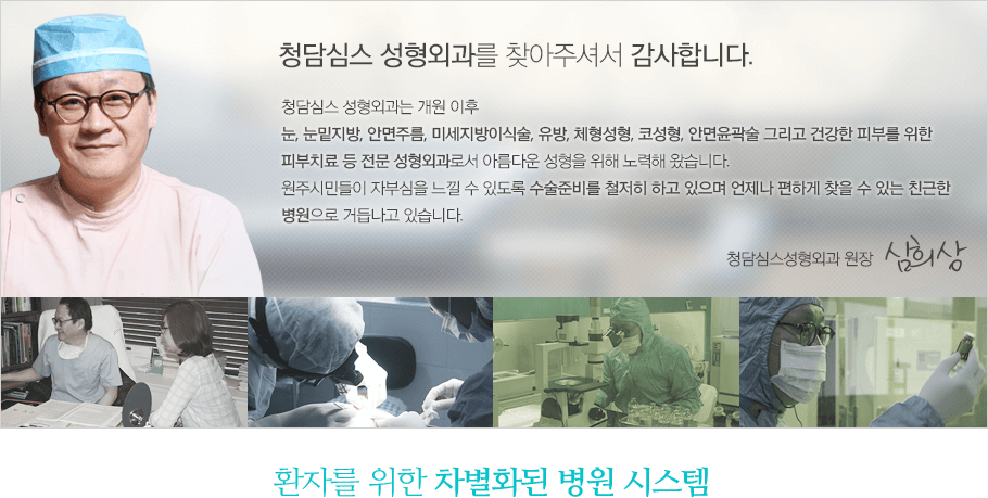 전류 인체에 자극을 주어 긍정적인 효과를 이끌어 내는 몇 가지 형태의 전류가 있습니다. 이 전류는 주로 피부 아래에 있는 근육에 자극을 주어 수축과 이완을 반복시키므로 수술 후 부종을 빨리 회복하게 해줌과 동시에 떨어진 혈액순환을 회복시켜 초음파와 마찬가지로 상처 난 조직이 빠르게 회복되도록 도와줍니다. 당연히 멍도 빨리 사라지게 됩니다. 청담심스에서는 성형수술을 받은 모든 분들이 빨리 회복될 수 있도록 새롭게 알려지는 생리학적 지식을 기초로 한 차원이 높은 장비를 사용하여 서비스하고 있습니다.