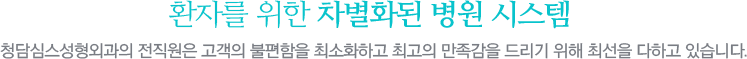 청담심스만의 특별함 이 세상 모두가 건강한 아름다움을 간직하는 그날을 위해 노력하는 청담심스입니다.